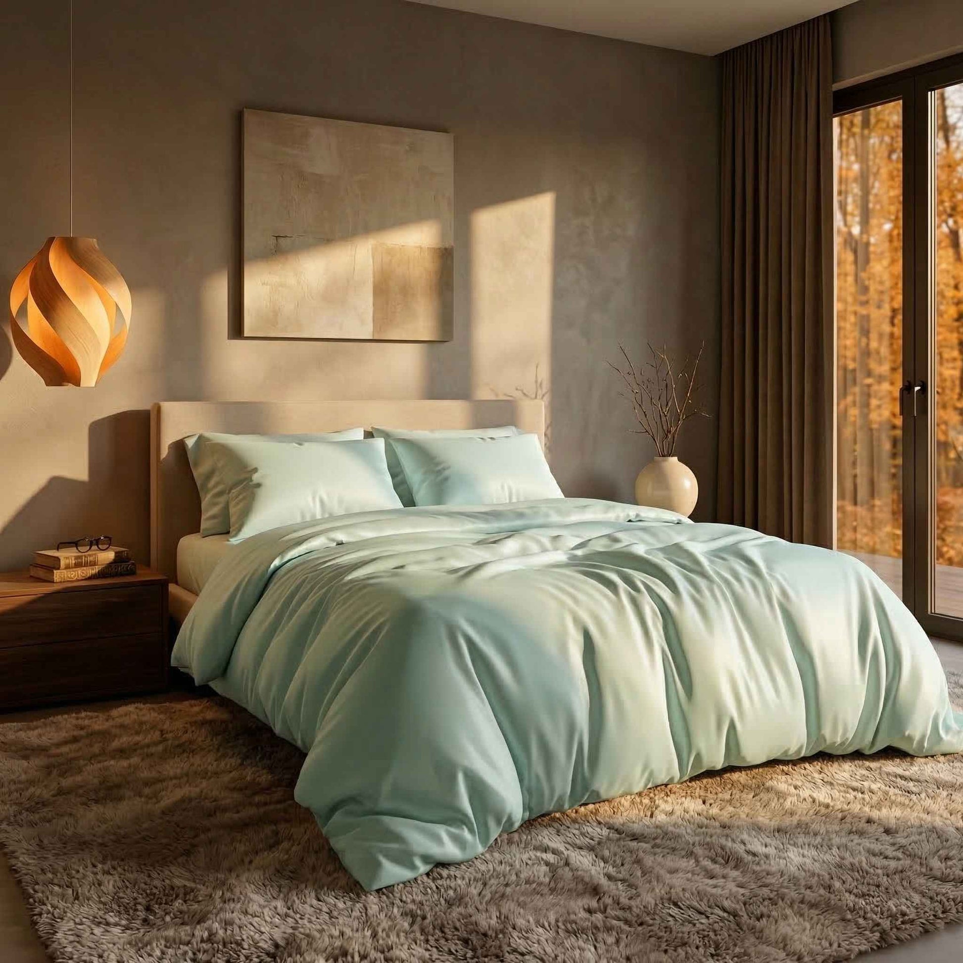 Die Velonce Lyocell-Bettwäsche aus Eukalyptus ist seidig-glatt und angenehm kühl. Dank der 300er-Fadendichte und herausragender Atmungsaktivität regulieren die Fasern aktiv die Feuchtigkeit. Das Ergebnis ist ein durchgängig frisches Schlafklima. Zudem bleibt Ihr Bett durch die natürlich hypoallergenen Eigenschaften deutlich länger hygienisch rein und angenehm.