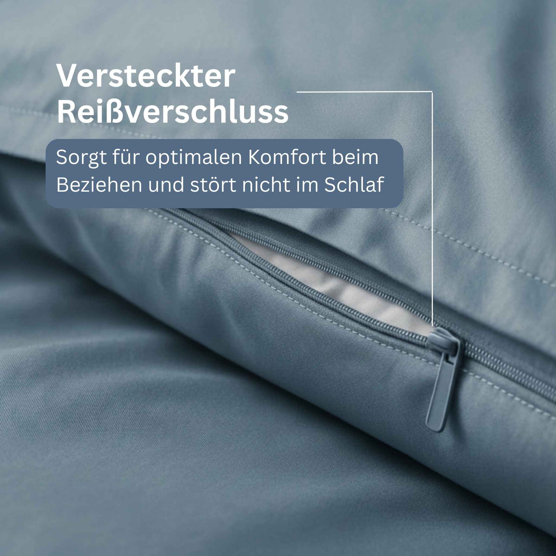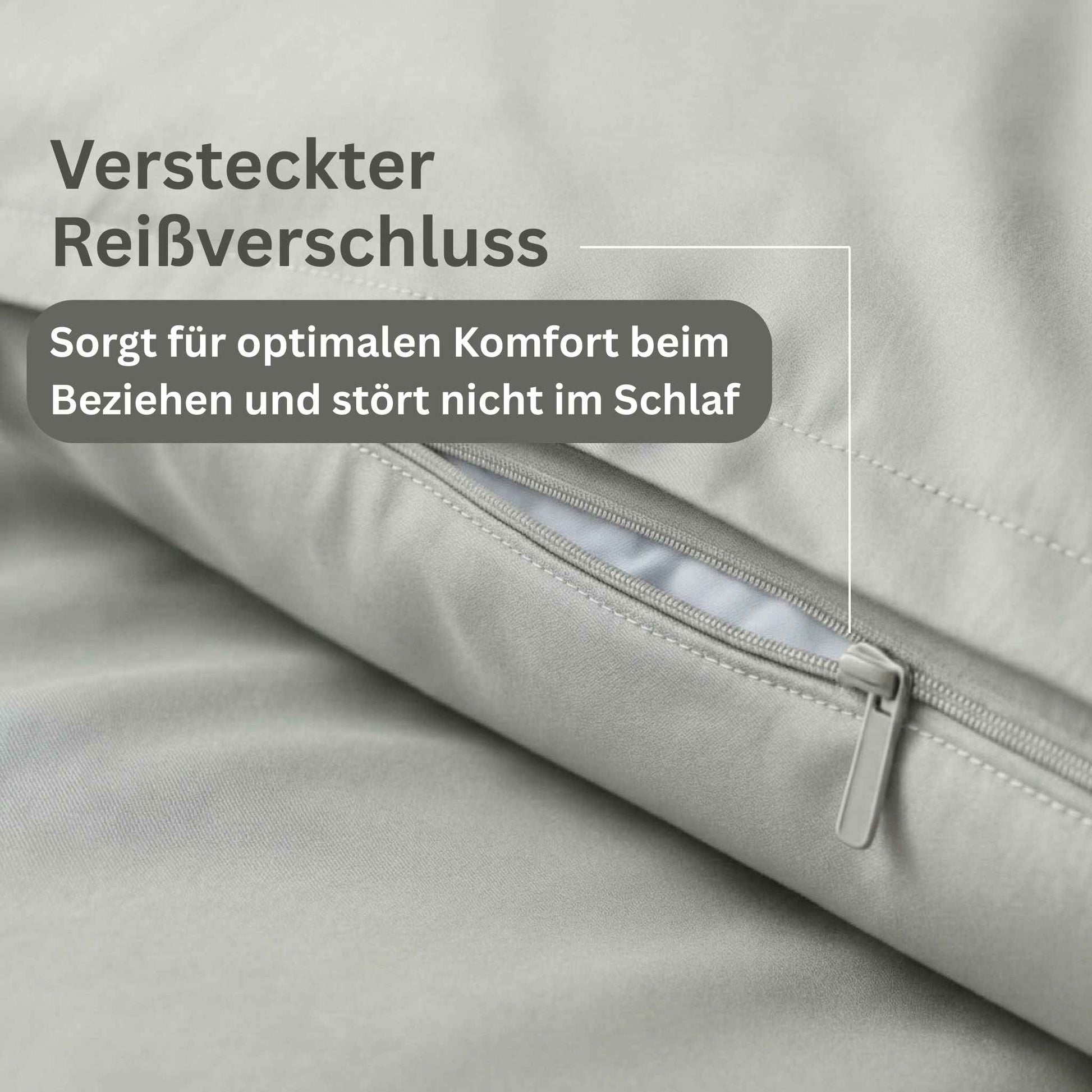 Wir finden dein Schlafkomfort sollte bereits vor dem ersten Einkuscheln beginnen. Statt sich mit kleinen Knöpfen abzumühen, sorgt unser hochwertiger Reißverschluss für ein leichtes Beziehen in Sekunden. Es erleichtert nicht nur das Beziehen des Bettes, sondern trägt auch zu einem erholsamen und gemütlichen Schlaf bei.
